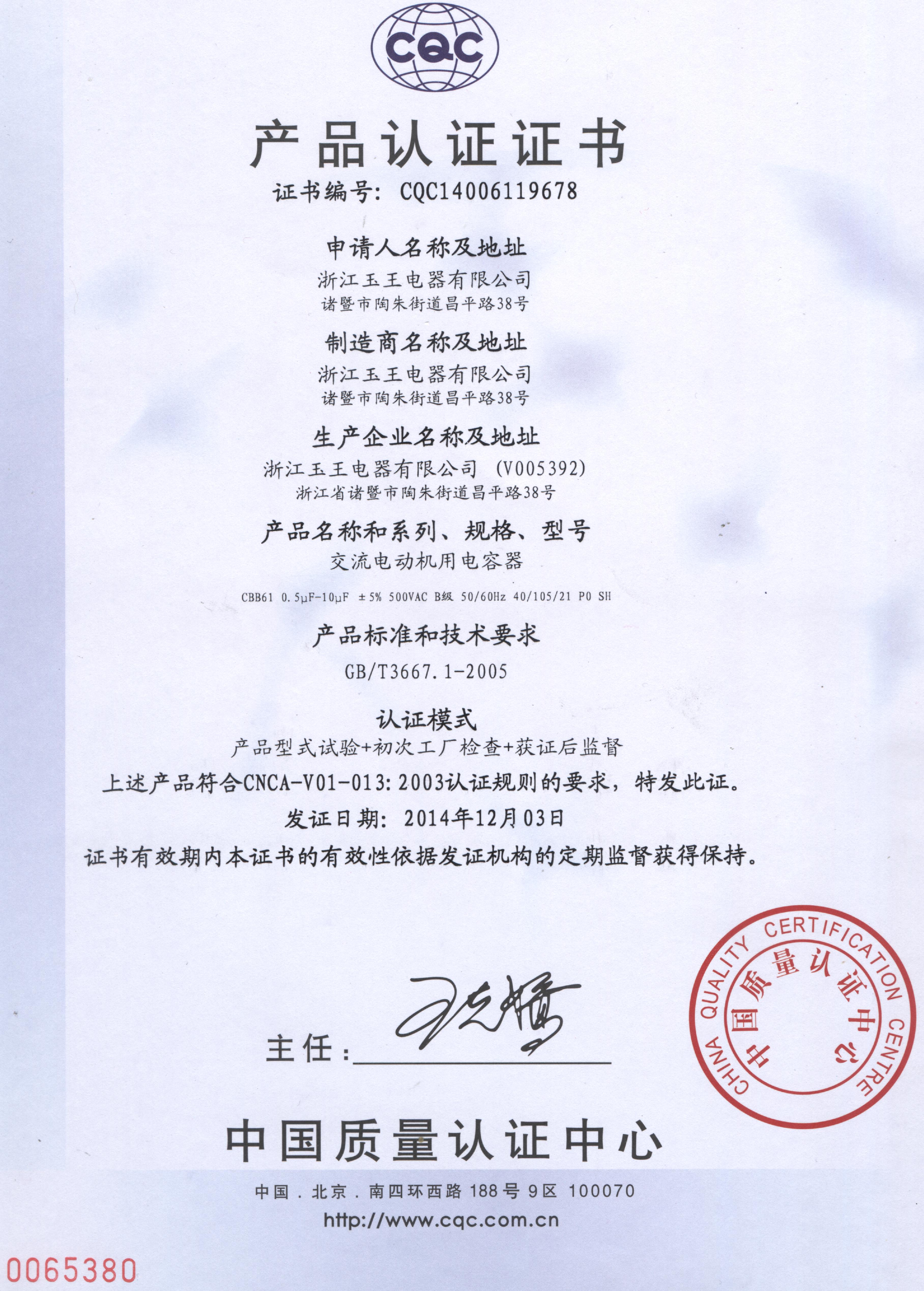CQC证书 CBB61 0.5μF—10μF 500V B级 40/105/21(中文)