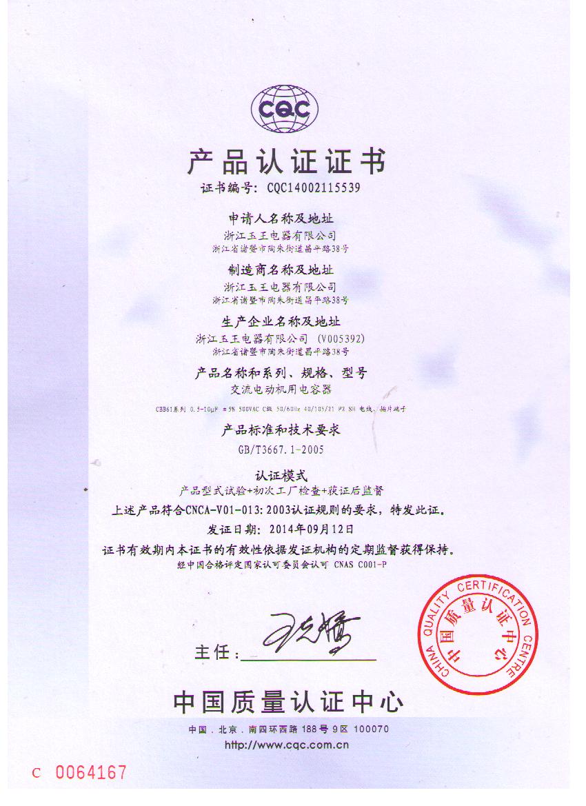 CQC证书 CBB61 0.5μF—10μF 500V 40/105/21 P2(中文)