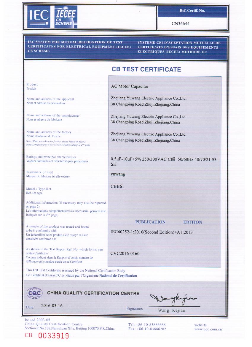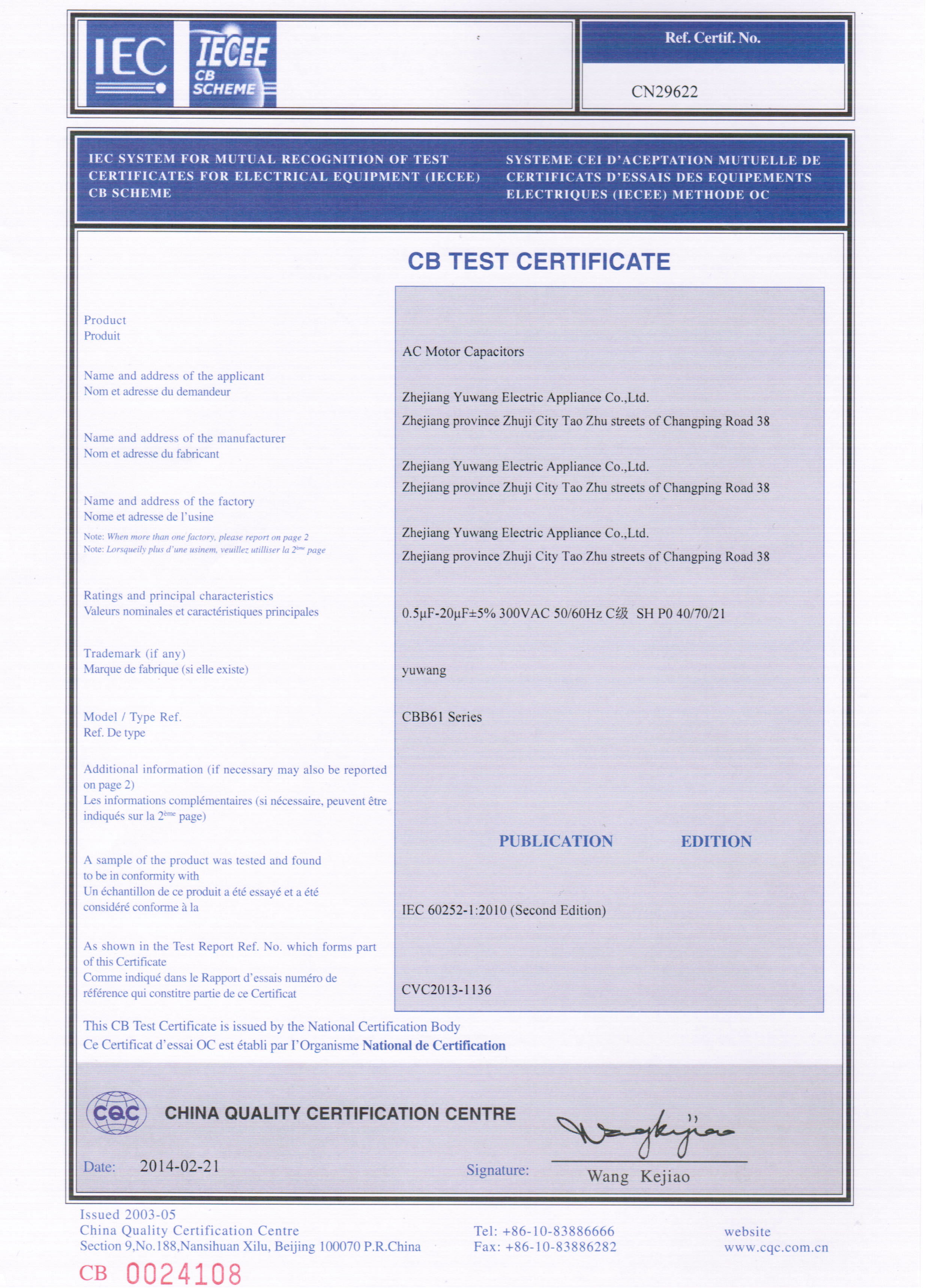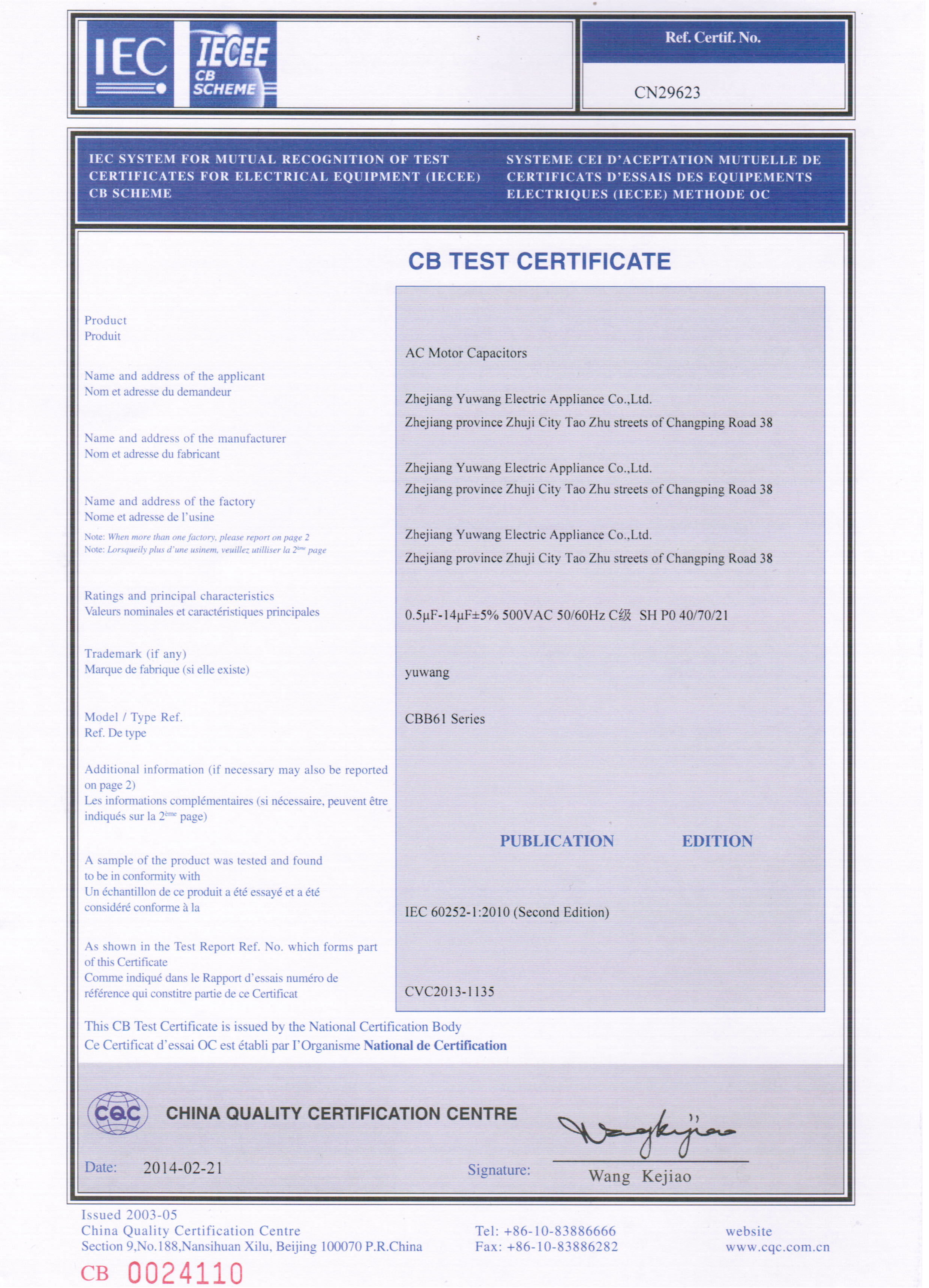 CBB61 0.5μF—14μF 500VAC 50/60HZ C级 SH P0 40/70/21