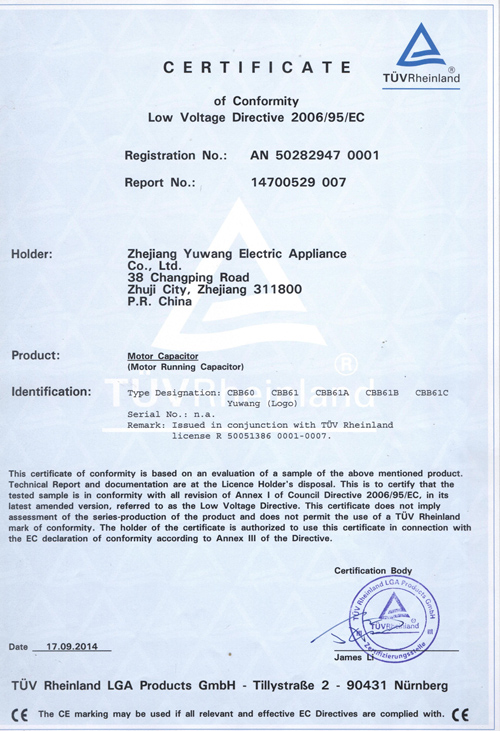 TUV CBB61B 0.5μF—10μF 400V 450V 40/70/21 P2